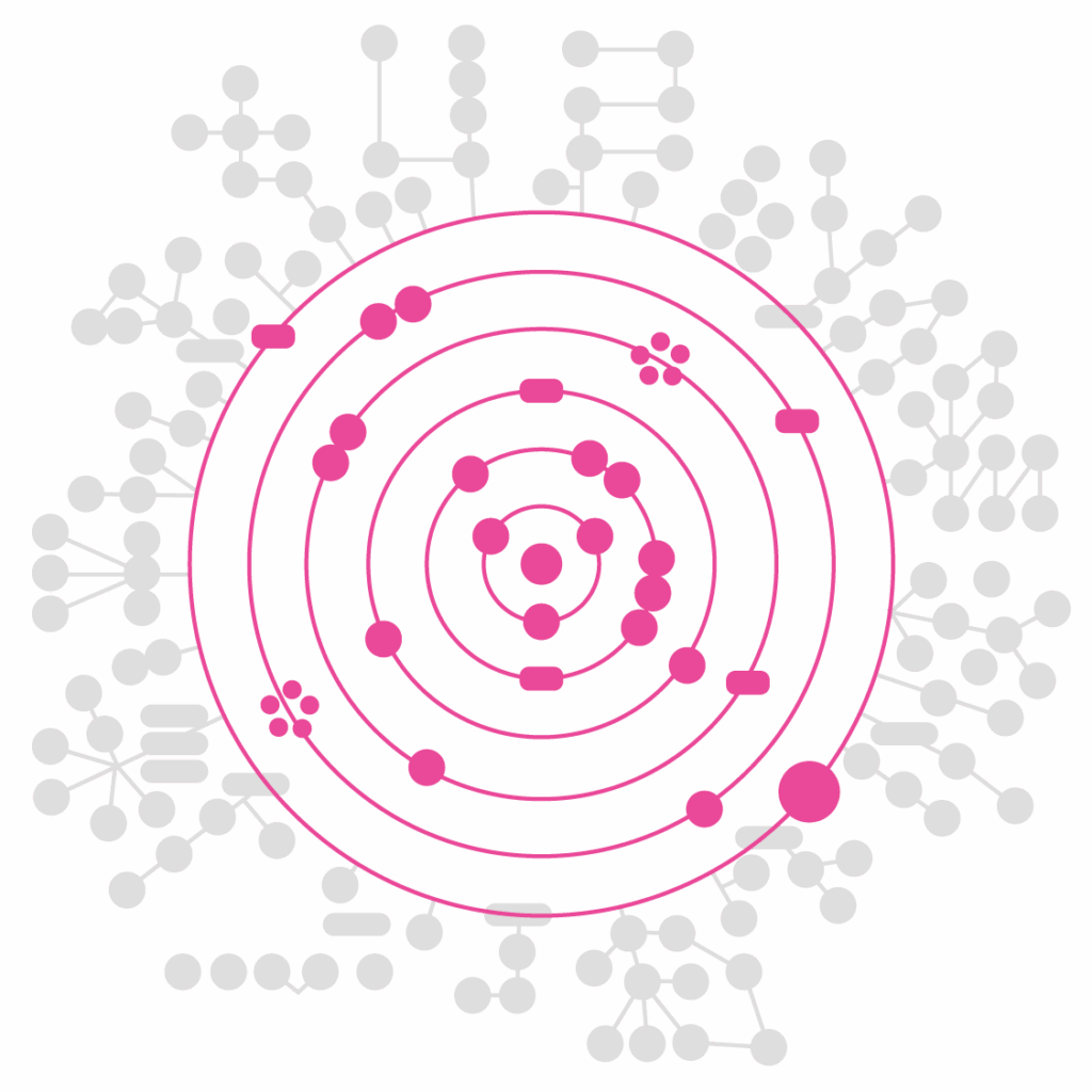 The pink highlights show cybersecurity projects branching out outside of the circle, beyond the Core Curriculum.